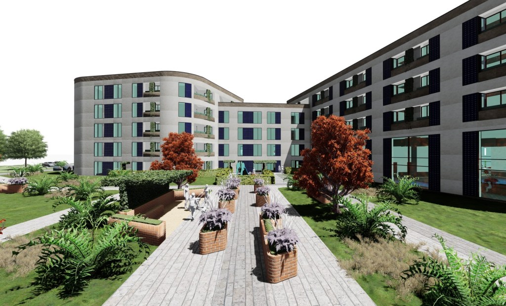 Die hier vorgestellte Arbeit befasst sich mit dem Ziel des inklusiven Mehrgenerationenwohnens und stellt die Generationen in den Mittelpunkt, die in einem Wohnquartier zusammenleben wollen. Das Hauptaugenmerk liegt auf der Planung inklusiver, barrierefreier und teilrollstuhlgerechter Wohnungen, die auch für Menschen mit unterschiedlichen Einschränkungen geeignet sind. Auch die Gemeinschafts- und öffentlichen Bereiche (Schwimmhalle, Fitness- und Yogaräume, Veranstaltung / Werkstattraum und Kinderbetreuungsräume) sind barrierefrei und rollstuhlgerecht gestaltet.