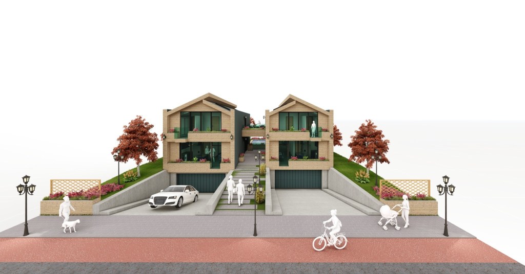 Konzept Idee Doppelhaushälfte mit Animation und Visualisierung