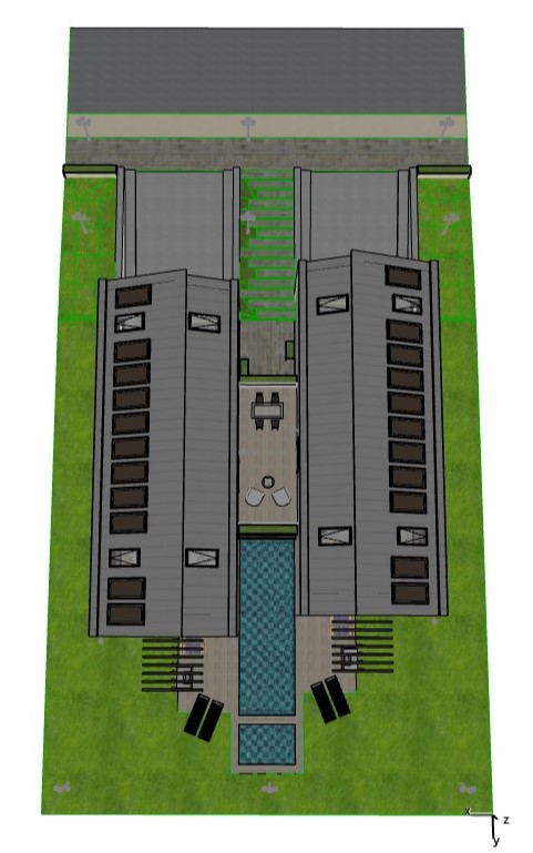 Im Erdgeschoss befinden sich:- Ein Küchenraum mit Speiseraum- Ein Gästezimmer mit Bad- Ein Wohnzimmer mit Galerie Insgesamt Wohnfläche: 112 qm Im Obergeschoss befinden sich:- Ein Elternzimmer mit Ankleideraum- Ein Kinderzimmer- Ein großes Badezimmer mit freistehender Badewanne Insgesamt Wohnfläche: 80 qm Im Kellergeschoss befinden sich:- Eine Tiefgarage für zwei Autos- Zwei Technikräume Insgesamt Fläche: 90 qm Gemeinschaftsnutzflächen für beide Häuser:- Eine Außentreppe- Ein Außenpool- Eine große Terrasse Insgesamt Nutzflächen: 85 qm