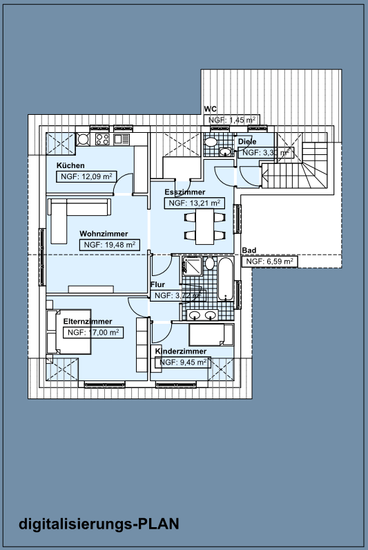 Wohnfläche Berechnung und Bearbeitungspläne 86,30 qm